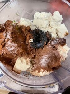 3. Blend ingredients together until a smooth mousse forms. This could take several minutes. Scrape down the sides of the bowl as necessary. The mousse is done when it is all smooth. If the mousse is too thick, add more amond milk one tablespoon at a time.