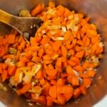Chop the onions and carrots and add to a soup pot along with the olive oil. Over medium heat, saute until the onions are translucent.