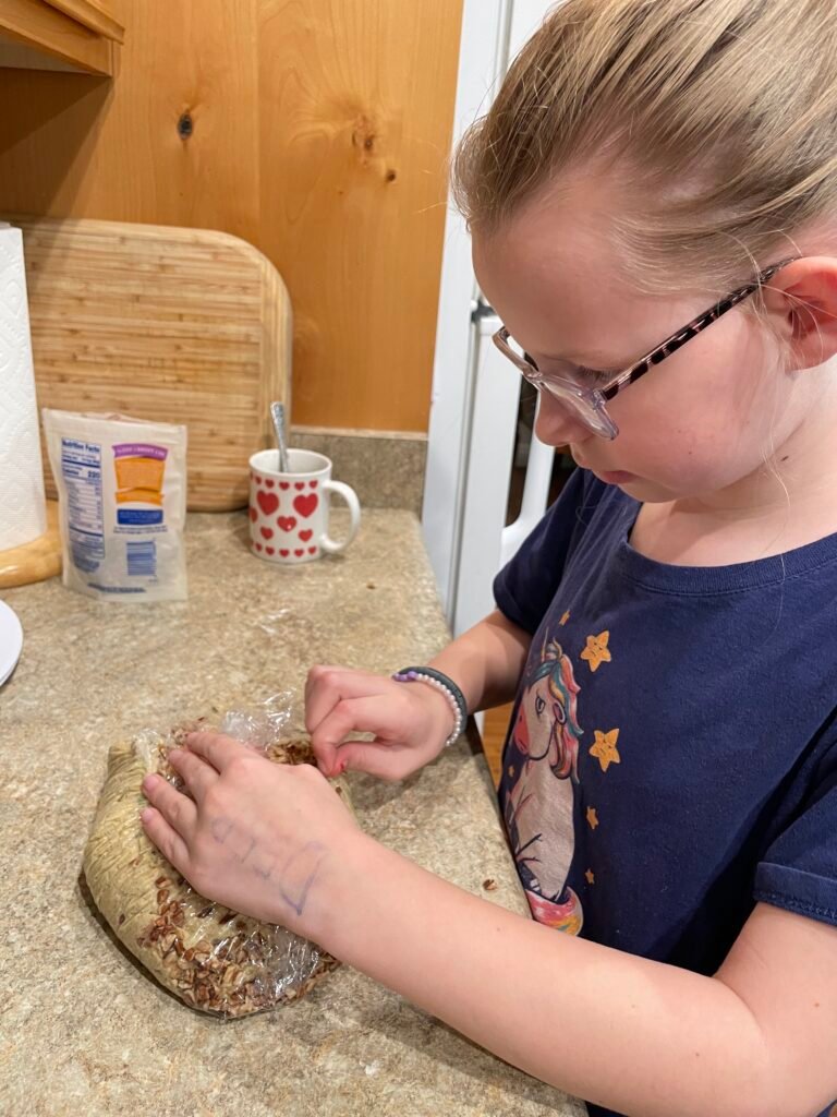 When I was growing up, my mom made a cheese ball every New Year’s Day! The tradition started because all that my dad and brothers wanted to do that day was watch football bowl games. So, instead of trying to have a regular meal, she just made the cheese ball and served it with crackers and vegetables. It was a charcuterie spread before they were a thing. In my memory, we only had this cheese ball on New Year’s Day, but I loved it so much. It tasted so good to me. So, I was curious if I could make it taste just as good if I made it with nuts instead of cream cheese. I tried to keep my expectations low, but when I tasted this new vegan cheese ball for the first time, I was elated. It tasted so good and so similar to what I remember it tasting like. It made my heart so happy! When I served it to my own kids, I felt like I could really share a memory from my own childhood and connect it to them! And they loved the vegan cheese ball as well, making the memory something that can live on still.