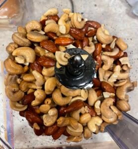 In a glass bowl, soak the cashews and almonds for at least 30 minutes, then drain.