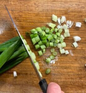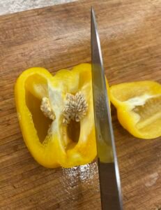 Dice the pepper and onions and set aside.